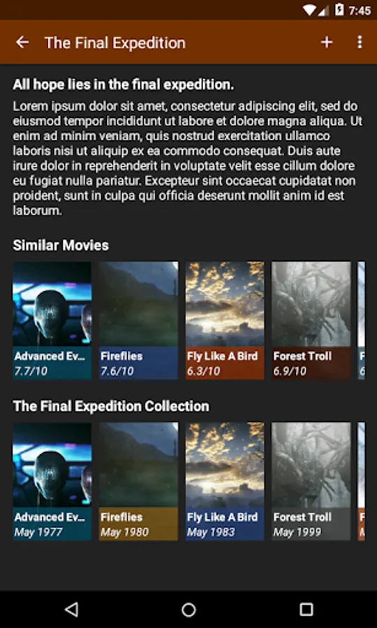 - View similar movies and movies that belong in the same collection