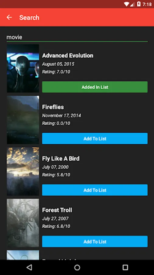 - No internet connection needed for viewing a movie already in your list