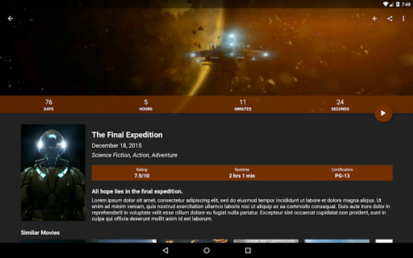 - Upcoming movies show countdown timer to release date