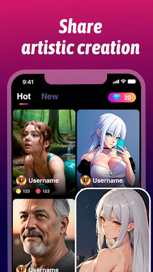 The magic doesn't stop at image generation. Picstar lets you share your extraordinary creations with the world in just a few taps. Publish your artwork directly within the app and join a vibrant community of artists, or download your masterpiece to your phone and effortlessly share it with friends on other platforms. Prepare to inspire and be inspired!