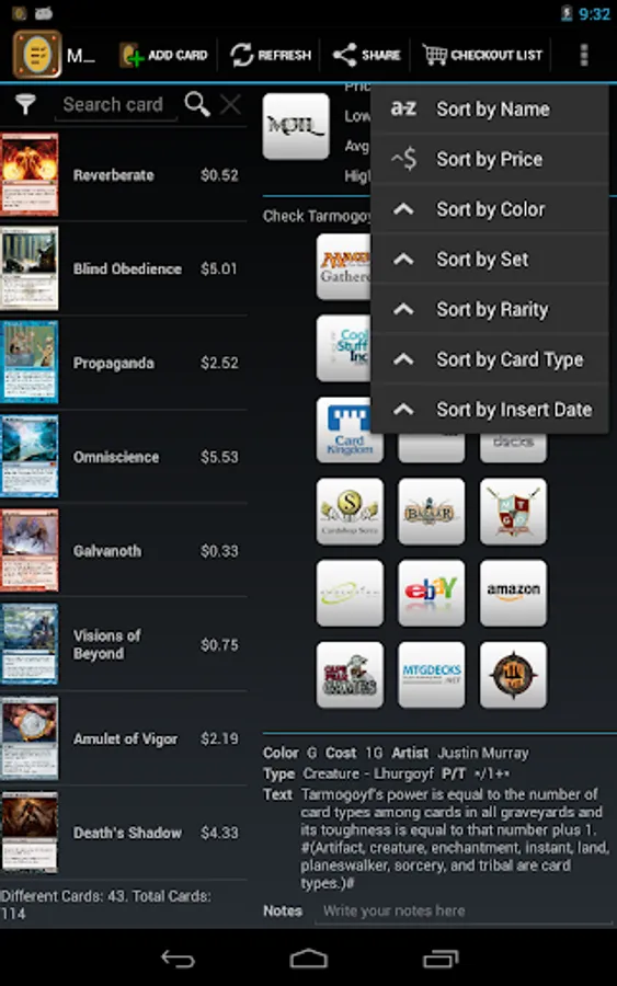 Want a list for your deck and other for your trades? It allows you to create multiple lists and check the real-time value of your collection.
