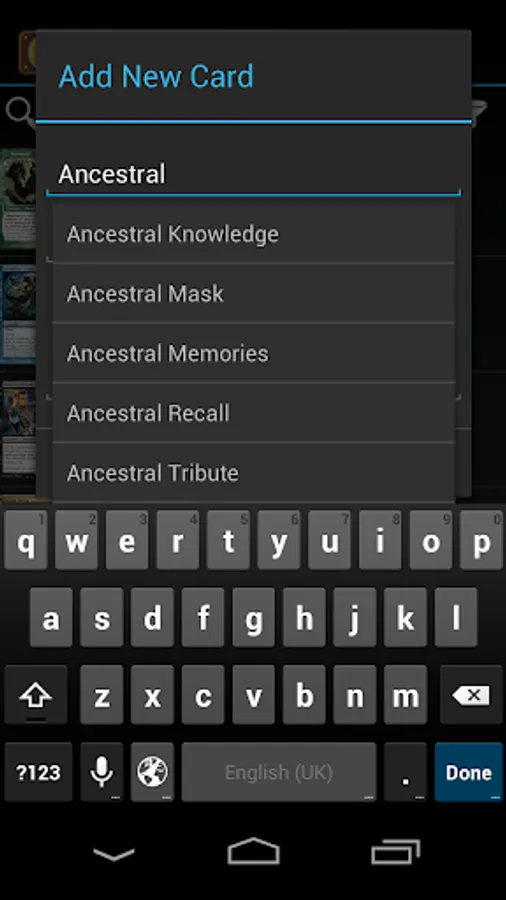 Please, be patient when you install the app for the first time: there are more than 20,000 cards to be loaded!