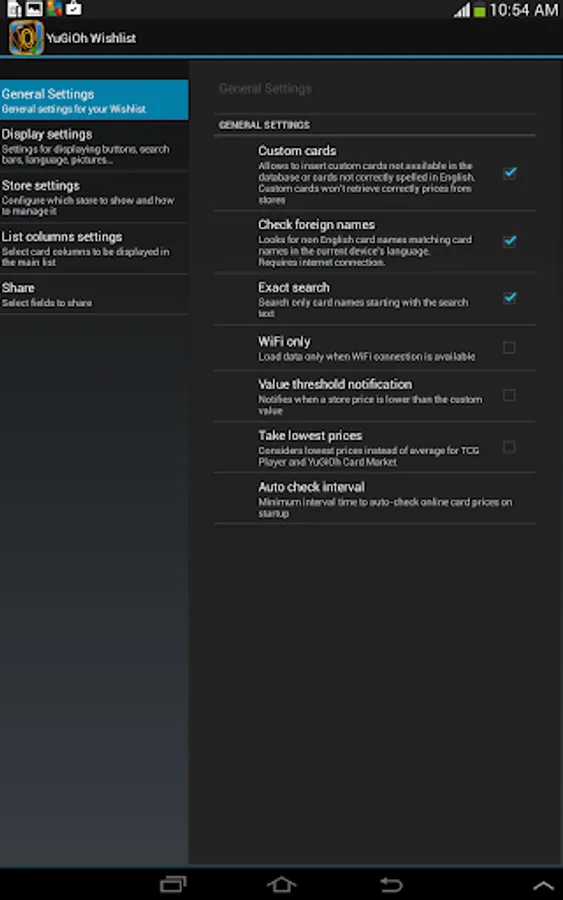 This unofficial app allows you to save your wanted cards in a quick way directly on your device showing pictures, live prices from several famous webstores, card text, available expansion sets and more useful data for collecting and trading in your local currency.