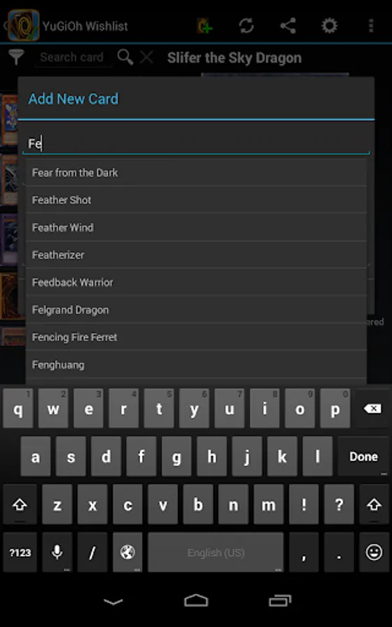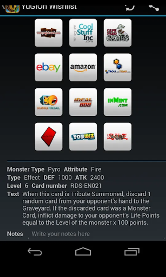 It contains a full offline database that offers the autocomplete feature when inserting or looking for cards with those un-rememberable names. Check the available Expansion Sets for every card, perform searches and sort by advanced filters such as attribute, level or rarity.