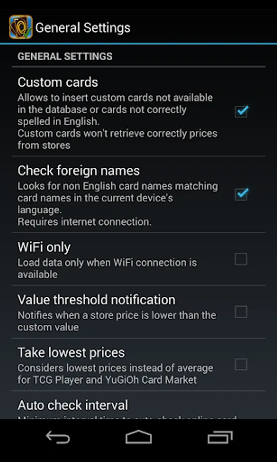 You can also define a Custom Value for each listed card and even a custom currency for it. Receive notifications when a listed card is cheaper than the inserted Custom Value or when a store has new Top Sells.