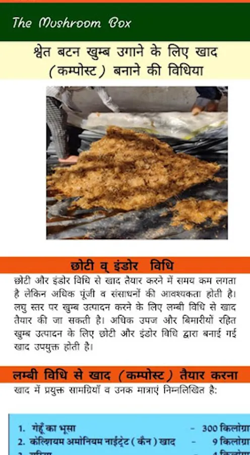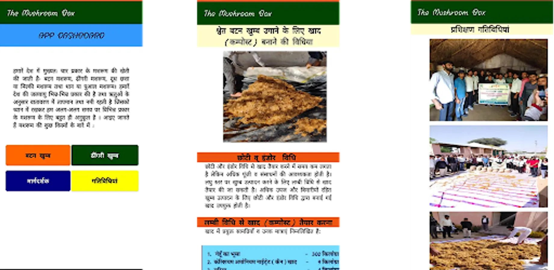 This app is developed to explain the techniques by which farmers can grow mushroom and gain income. This app contains all the methods of mushroom production.