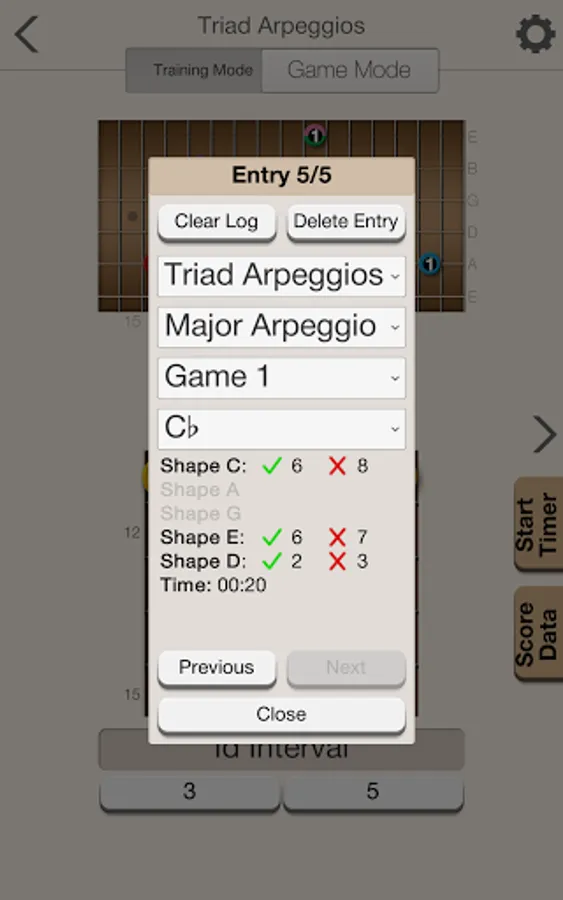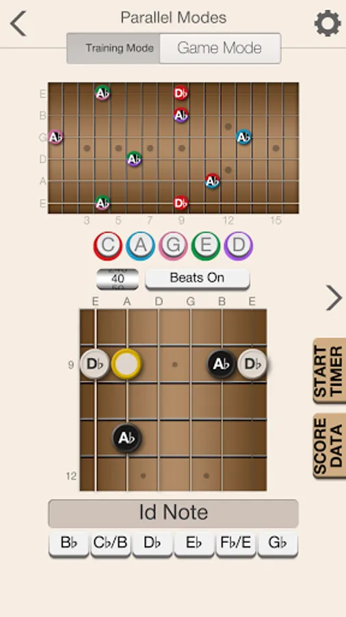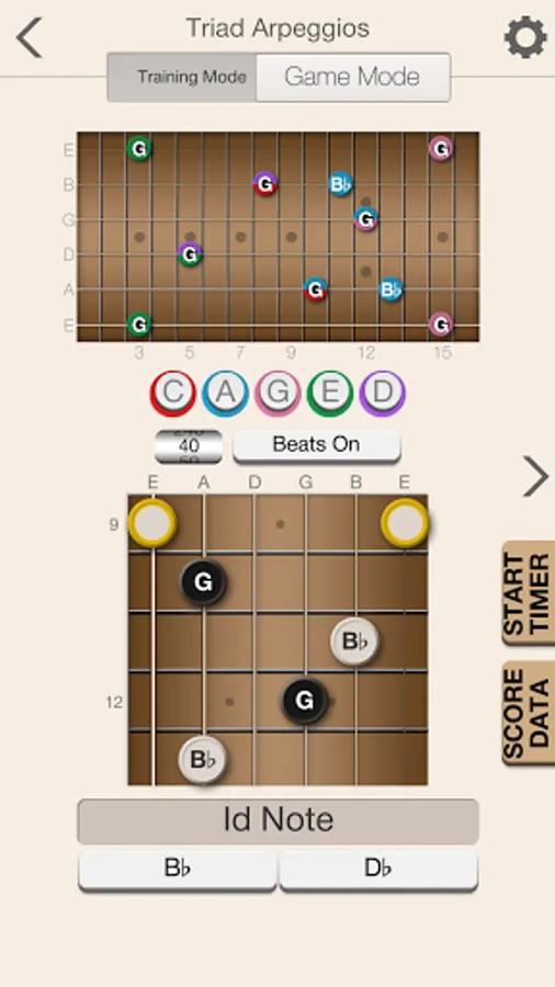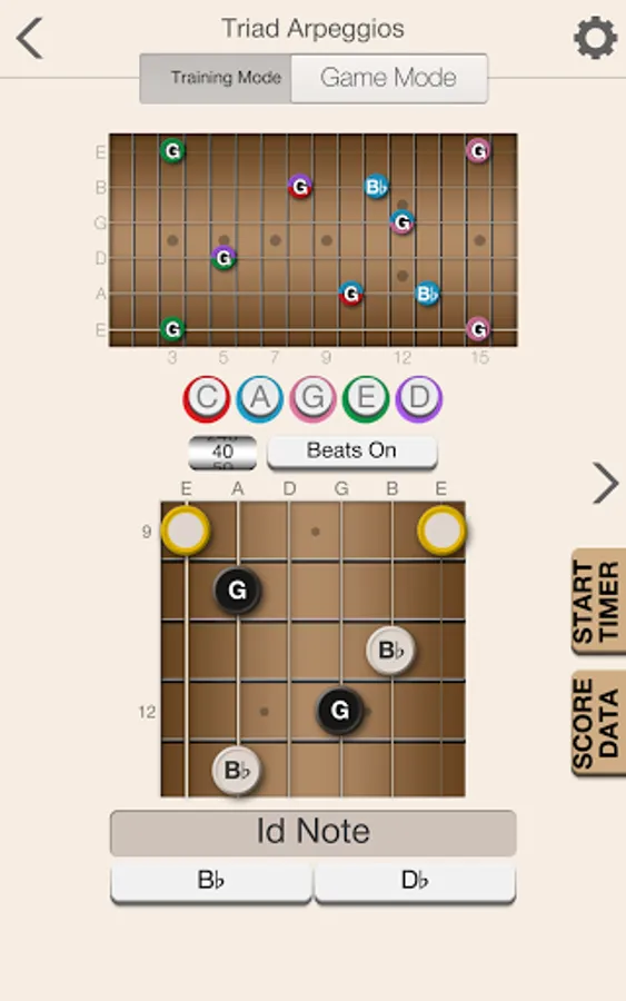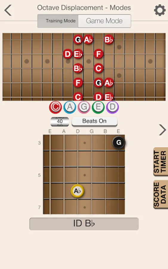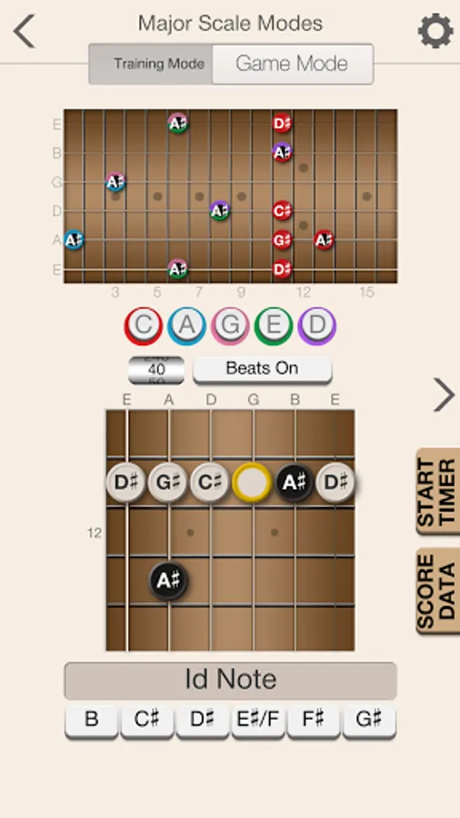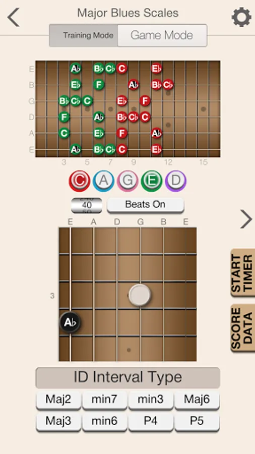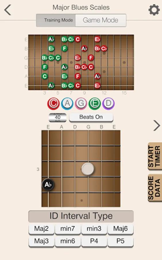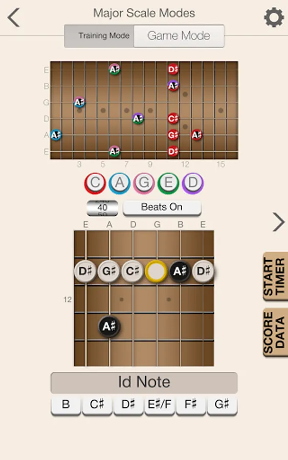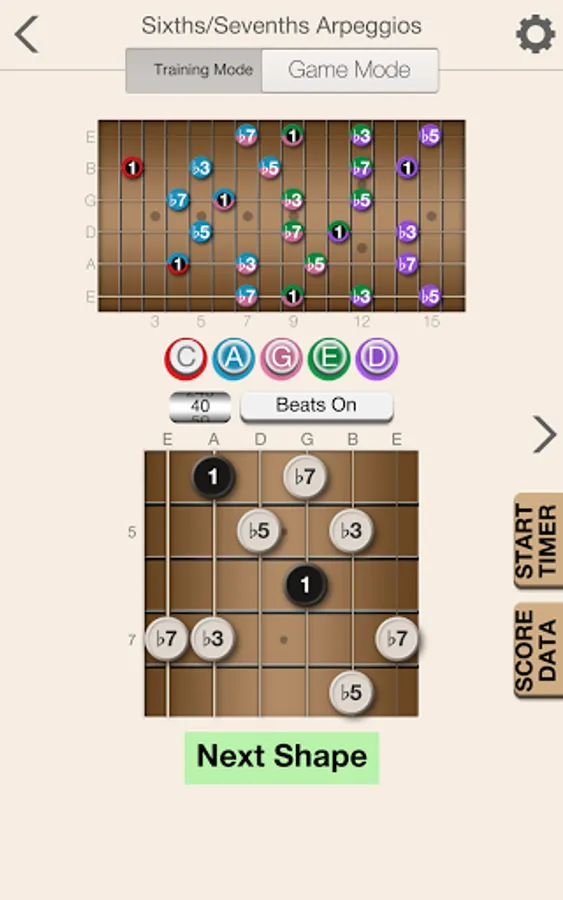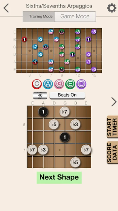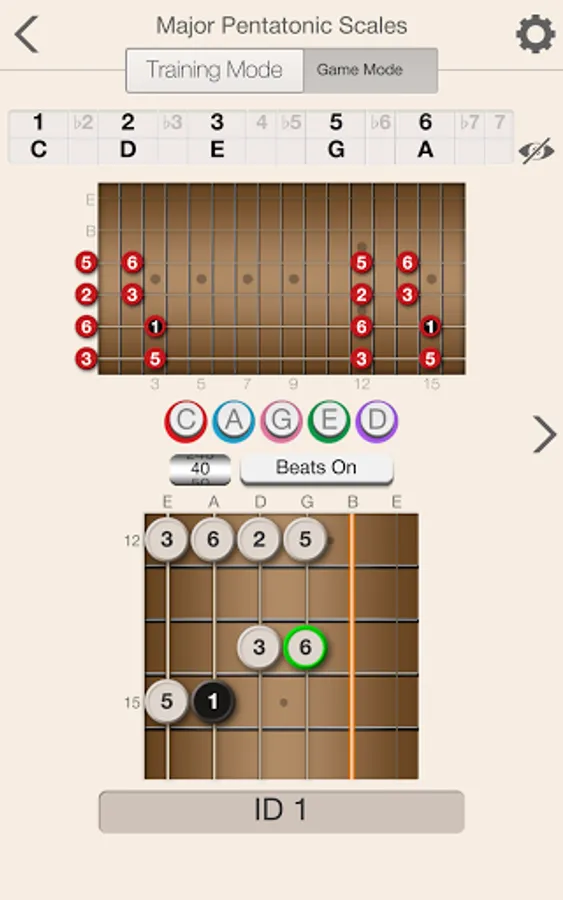 The app will help provide you with a solid foundation for scale patterns within the five CAGED shapes. Beyond providing training and recognizing both ascending and descending scale patterns, the app will also help you to learn scale patterns that run across all strings in both directions.