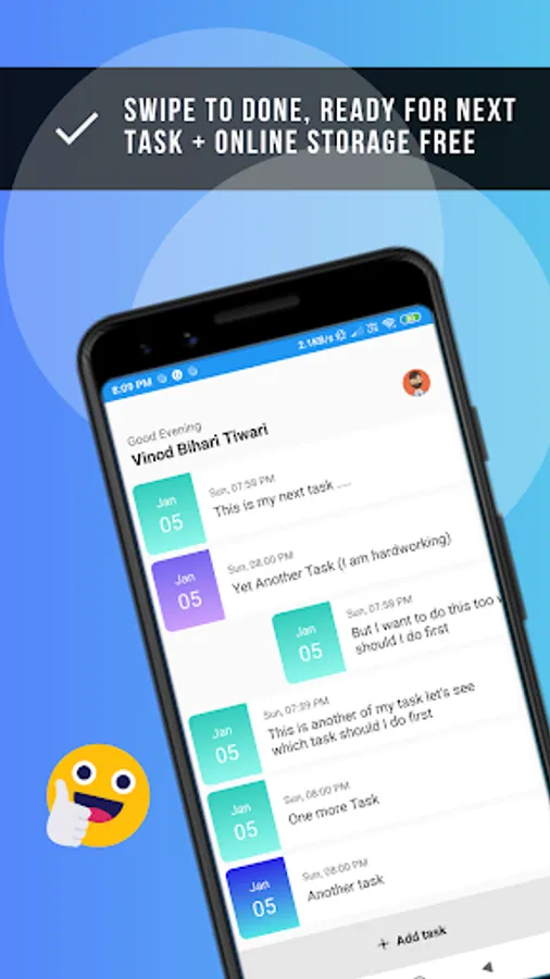3.Keep your Tasks Alive with Free Online Storage so lost device or not accessible no problem just login and you will be able to access all your Tasks/Todos