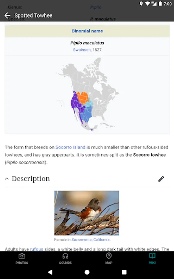 • Hi-res photos of 10,000+ world birds help make that tricky identification