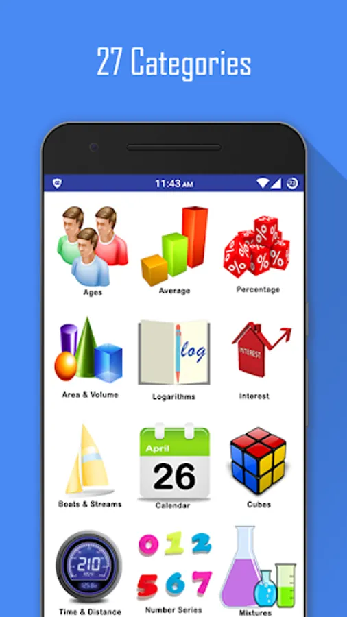 Our App has an extensive study mode which covers 27 Aptitude Topics in a fun loving Quiz Mode with Formulas and Explanation