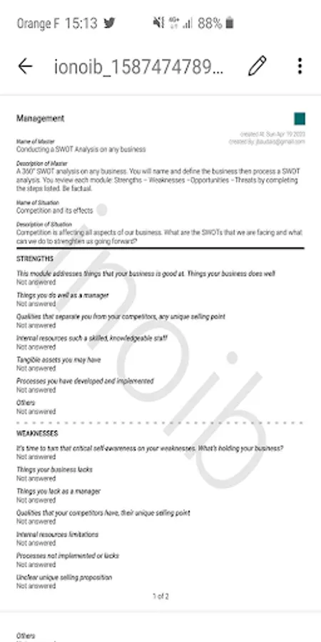 iNOIB is based in more than 20 years of field experience and can help individuals, companies and organizations to solve any issue or situation they are facing. Through predefined masters, iNOIB provide a thinking process to the user to evaluate situations through an effective step by step process, rendering clear and effective solutions.
