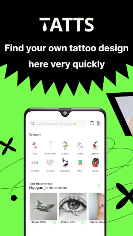 Different kinds of tattoo designs are gathered here. Take a look at the popular Korean tattoo artists designs and tattoo stickers.