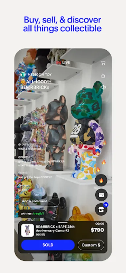 • Exclusive Discoveries: Immerse yourself in a world of limited releases, especially sneakers and shoes that capture attention. Explore exclusive apparel, rare collectibles, and designer toys, all available through live auctions and thoughtfully curated collections.