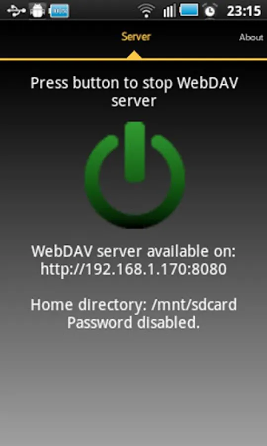 Keeps phone wake only while server is running. If phone is not wake WebDAV server can not be accessed.