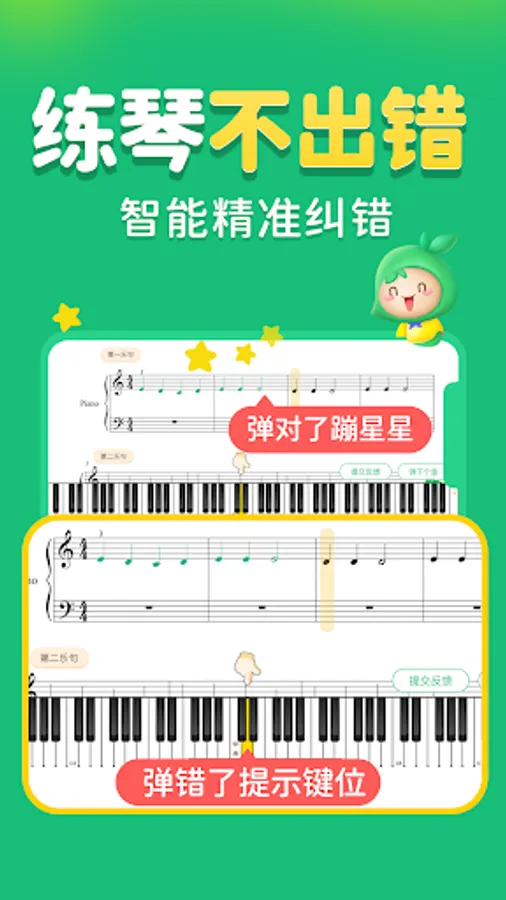 I don’t know if I play the wrong piano while practicing, what should I do if I practice more and more wrong? Use Xiaoye Yee intelligent sparring, AI seconds to correct errors, it can also tell you how to play the correct tone, and you can play the piano correctly.