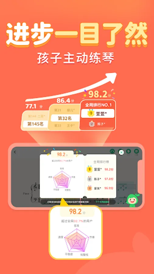AI can perform multi-angle scoring of performances, as well as problem analysis and playing guidance. The places that need to be strengthened will be clearly listed, so that parents can see at a glance the situation of their children's piano practice.