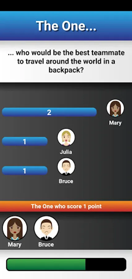 * 2 game modes: get points when you are nominated or when you vote as the majority.