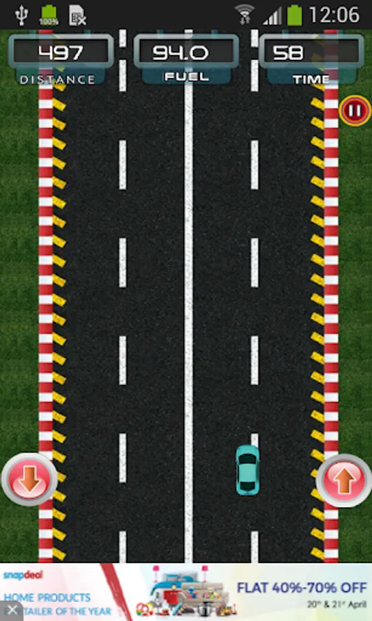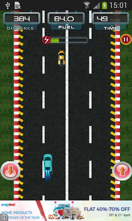 1. Tap (↑) to increase your car speed and (↓) to break your car.