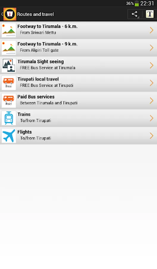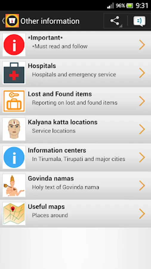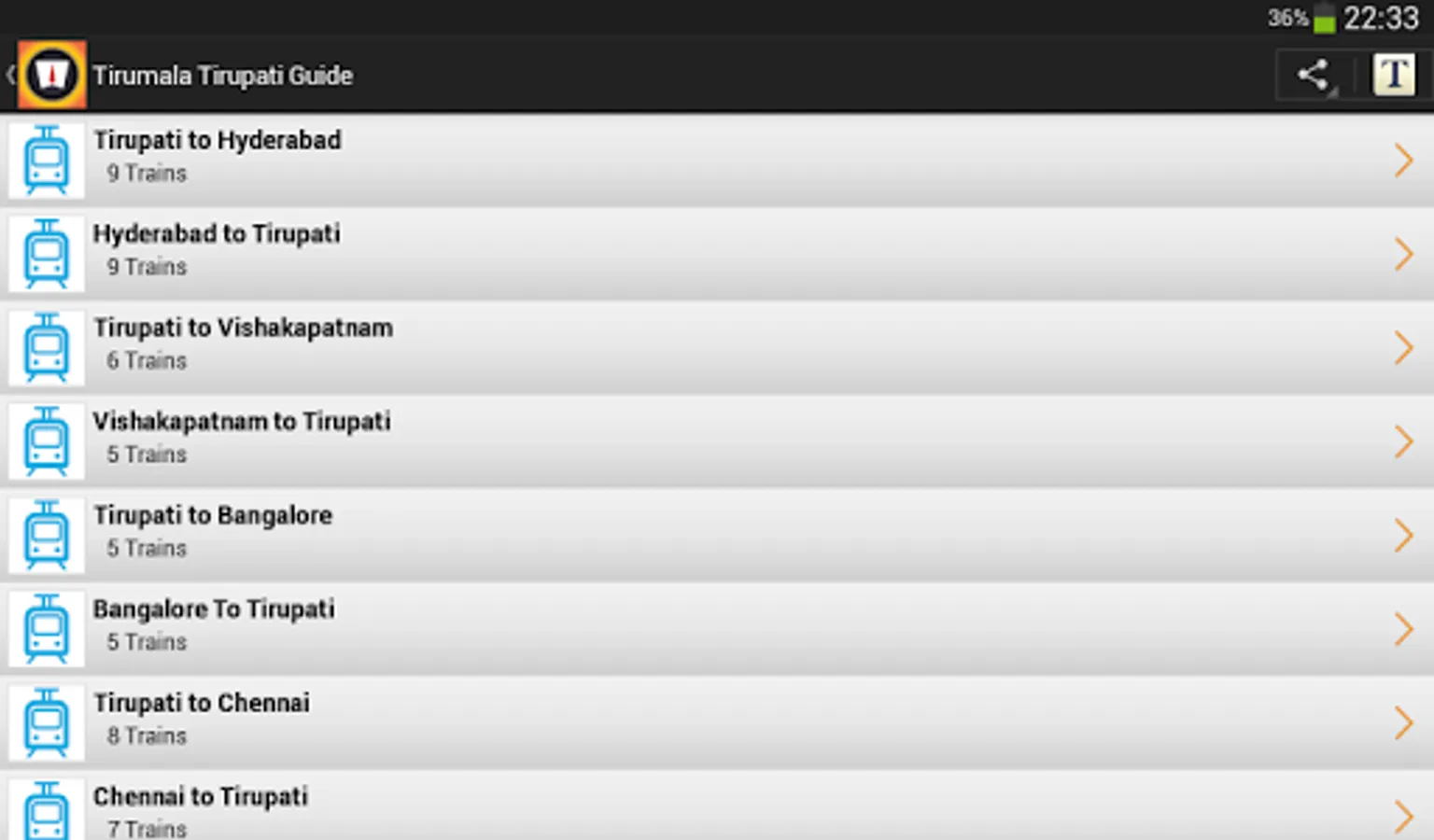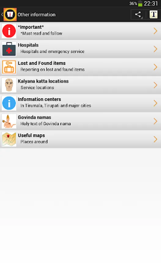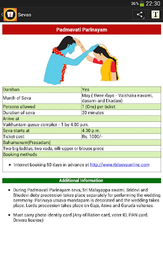 This app looks at the various Sevas and Utsavams that are performed to the Lord, significant places that are located inside the main temple and attractions that are located in Tirupati city, accommodations that are located on Tirumala hills and in Tirupati city, routes and travel locations and important information for tourists visiting the area.