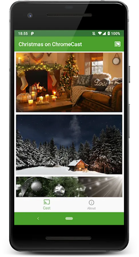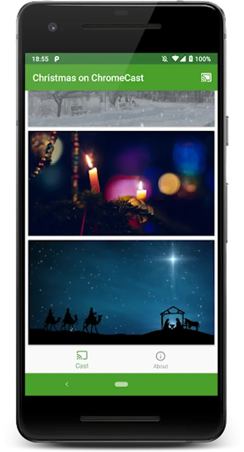 Choose from Advent Wreath, Christmas Trees, Holiday landscapes and set them as Chromecast live background.