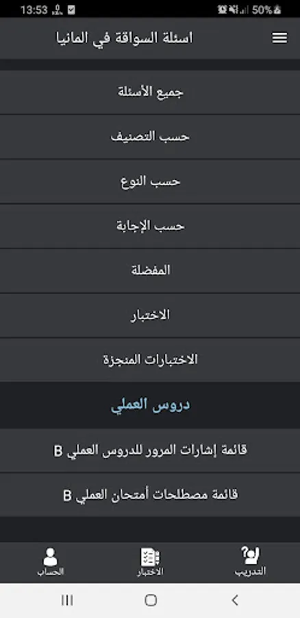 Through this program, you can solve theoretical questions about driving in Germany in Arabic, English and German