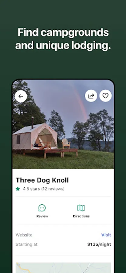 - Find nearby camping and unique lodging options