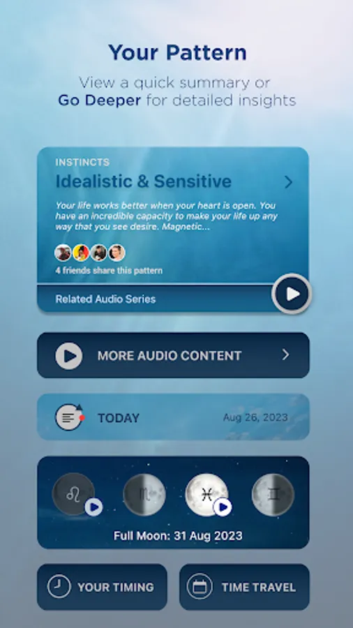 -Your Pattern: Unique and in-depth astrological insights into your various personality traits.