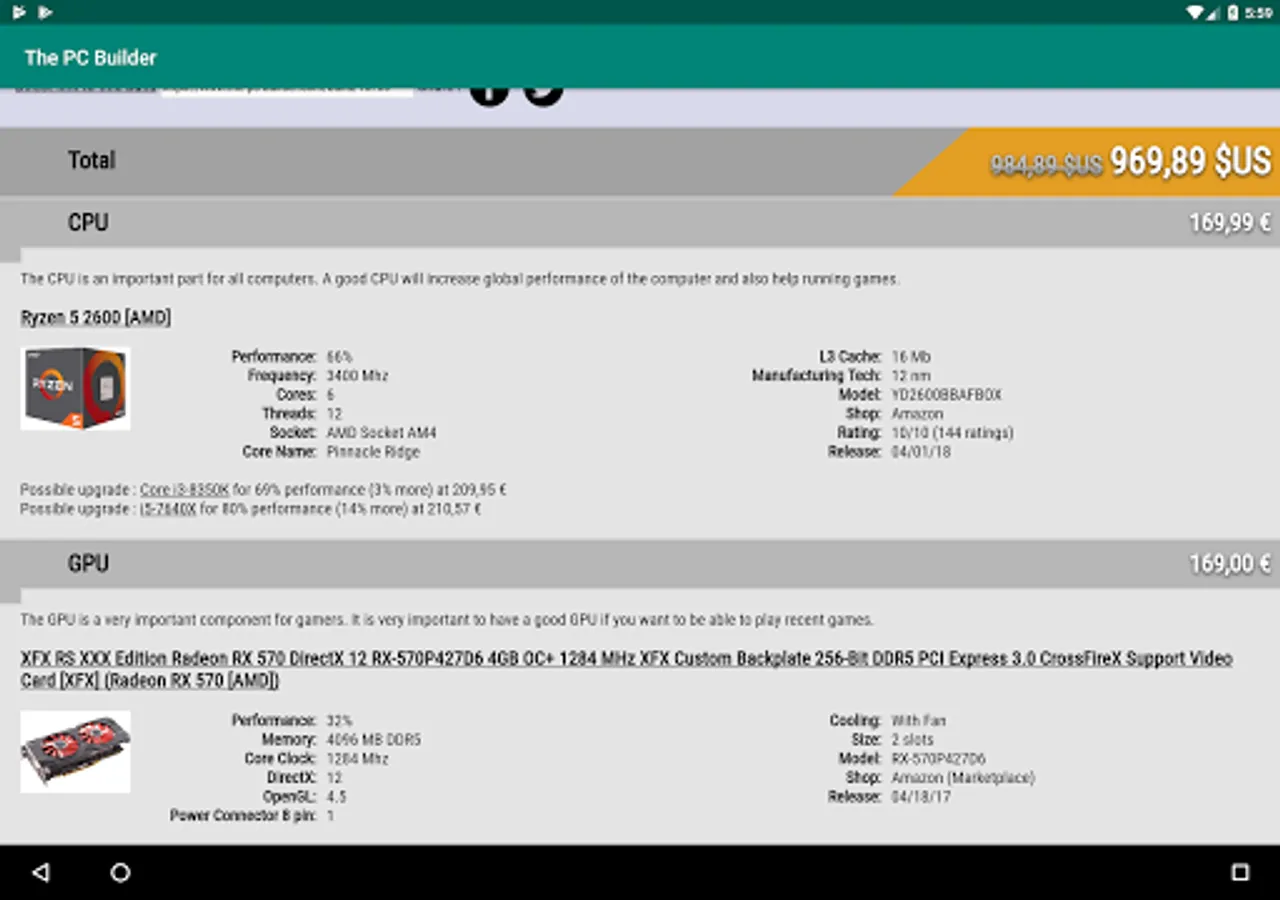 The PC builder will help you to find PC parts to build a PC, according to your budget or needs.