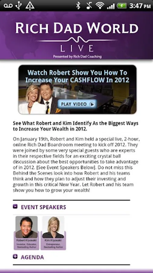 Download Rich Dad World Live today and gain full access to a library of Rich Dad videos, along with special access to view LIVE Rich Dad events right on your Android device, from anywhere in the world.