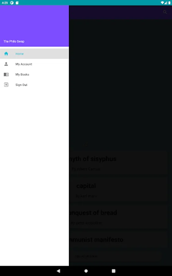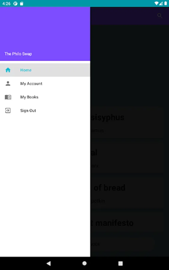 Book swap community aiming to make philosophy/political theory available to all. Users create an account, and once logged in they can add books they own to a list of available books to be swapped, and if they want a book they can request one. Once a user requests a book, an email is sent to the owner with the user’s address and phone number. The owner of the book can mail it to the user.