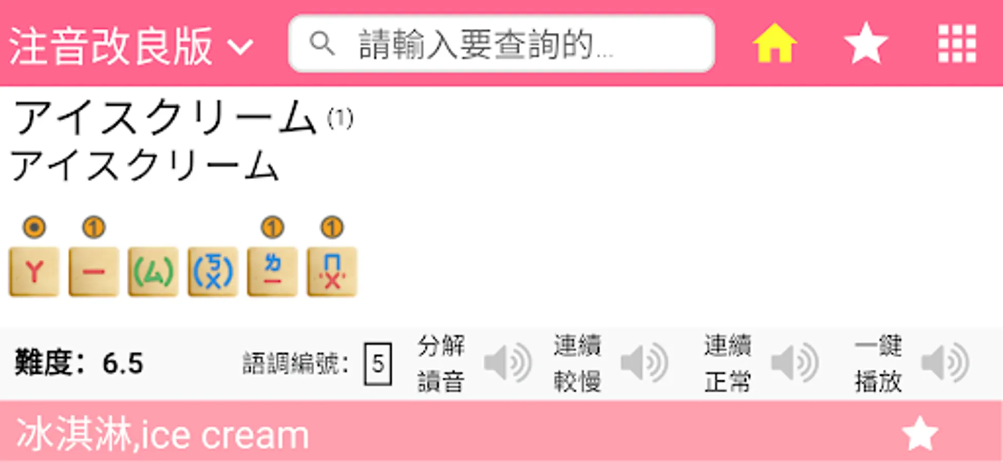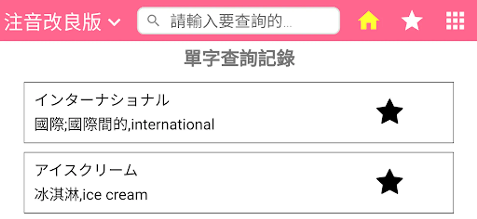 ● Query the pinyin bear phonetic symbols of Japanese words and phrases (Taiwan phonetic version and mainland Chinese phonetic version)
