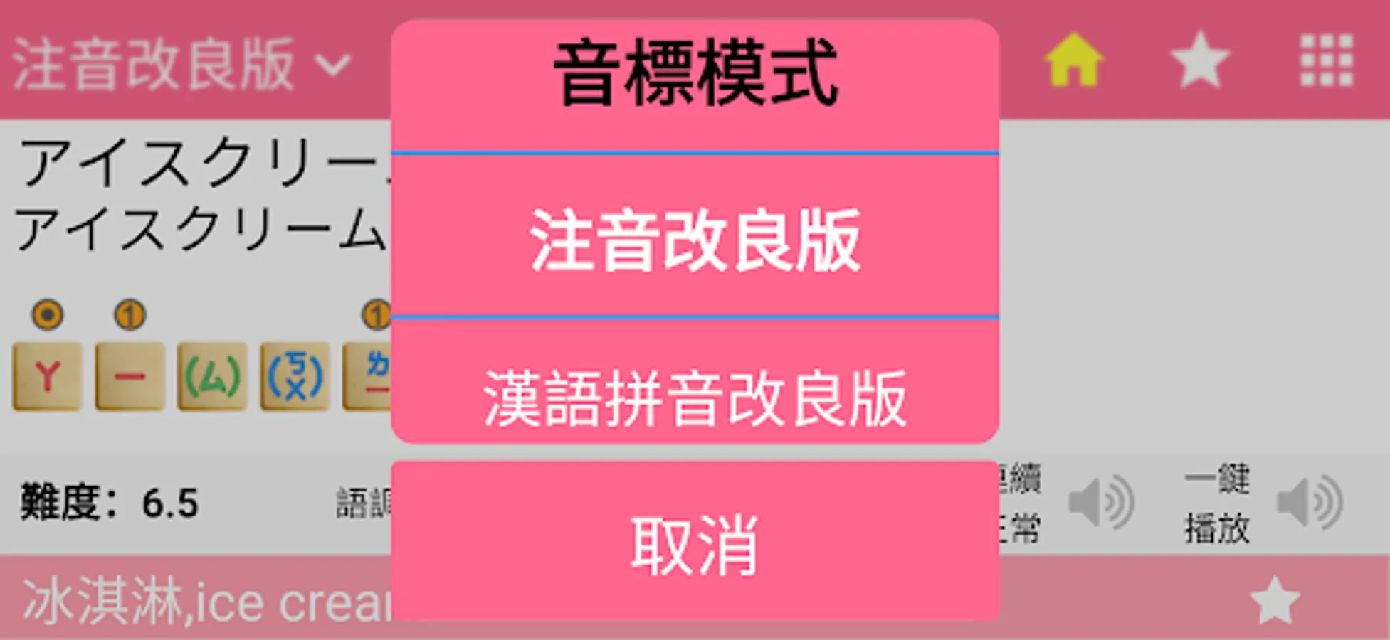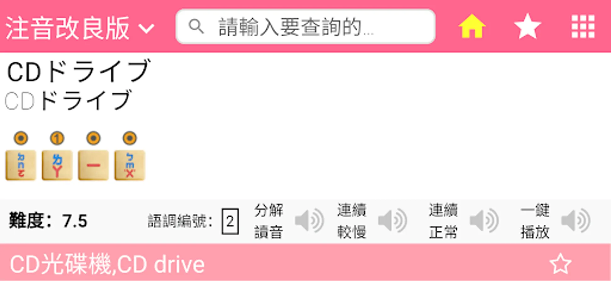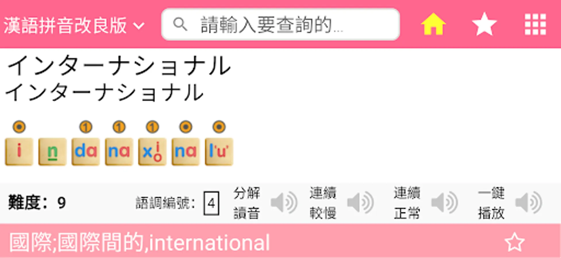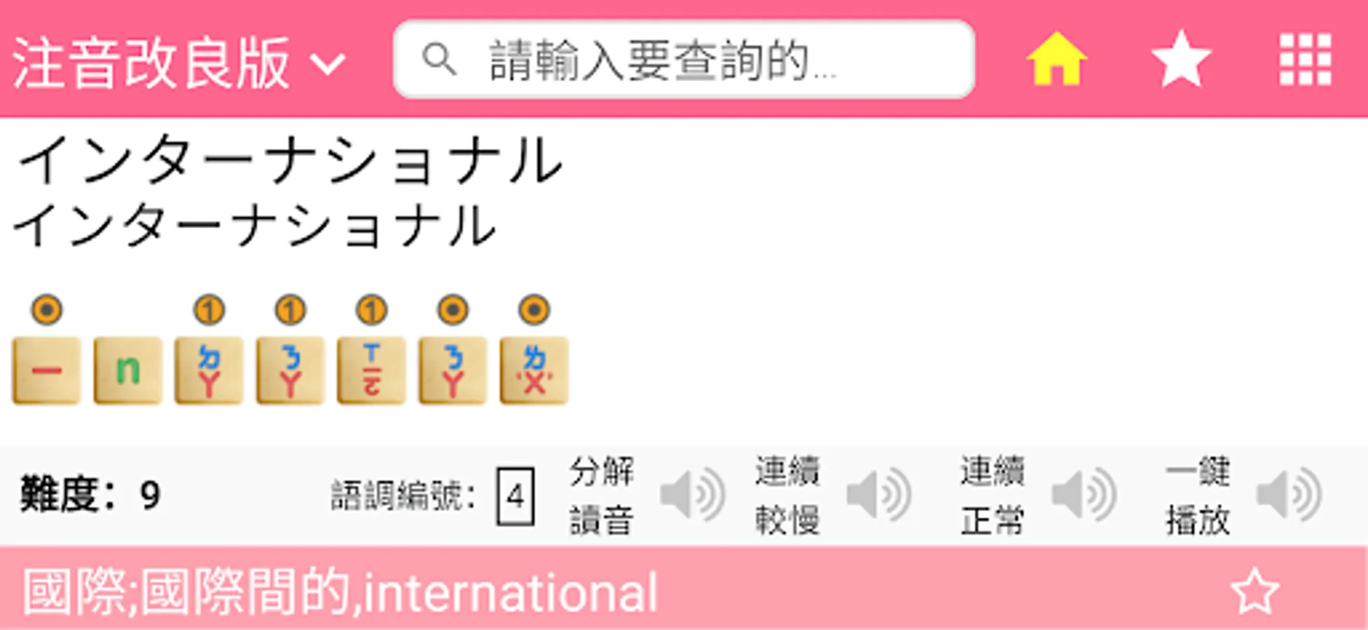 To query the phonetic symbols of Japanese words, you can choose the phonetic symbols of the phonetic bears in four tones and the phonetic difficulty level.
