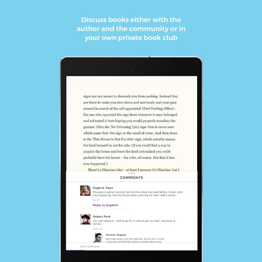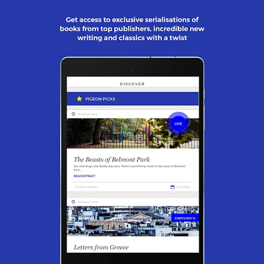 Welcome to The Pigeonhole, the book club in your pocket. Serialised, social and interactive, we are transforming your reading experience. Bring the world’s best authors along with you wherever you go.