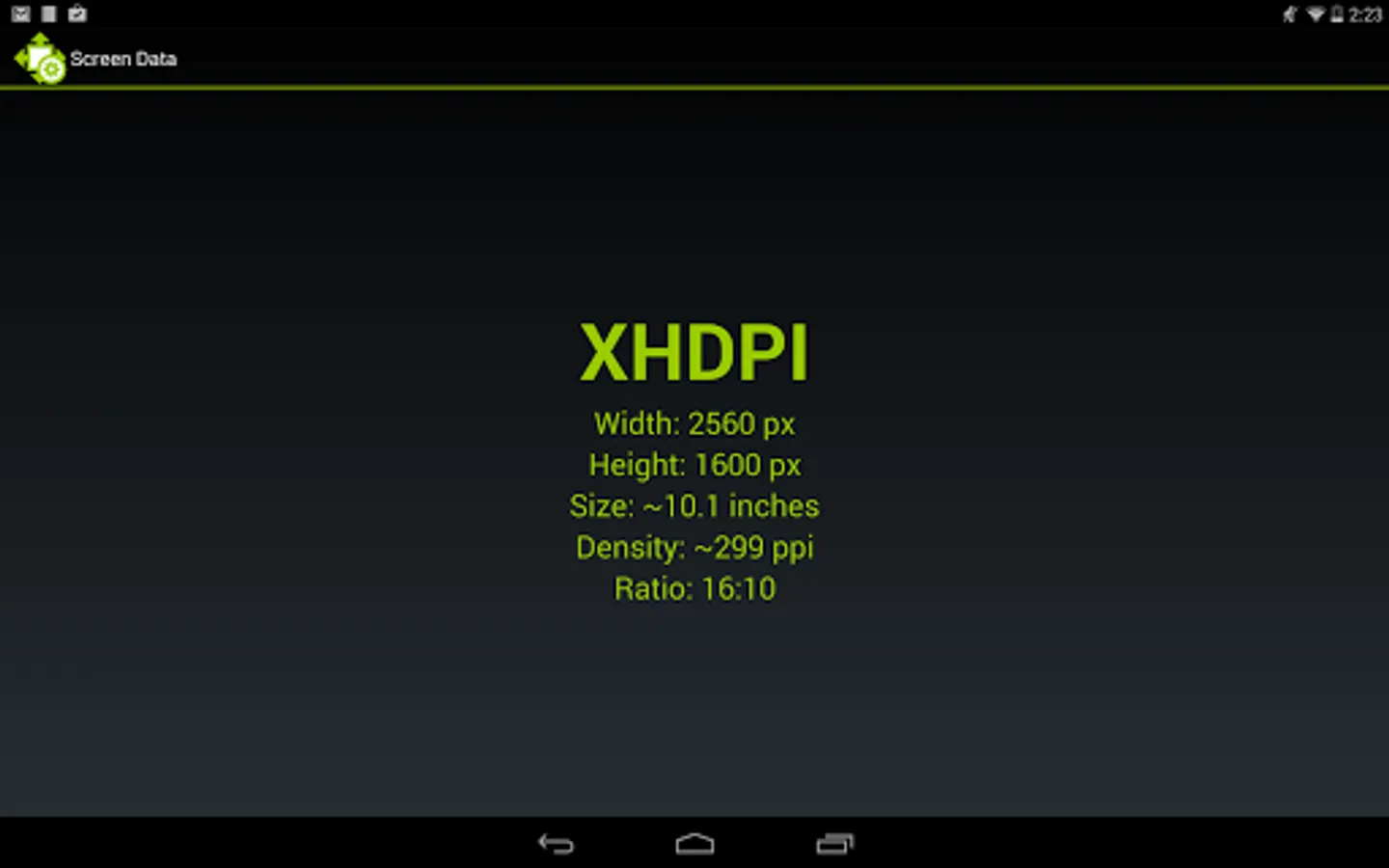 Shows your device screen density and size.