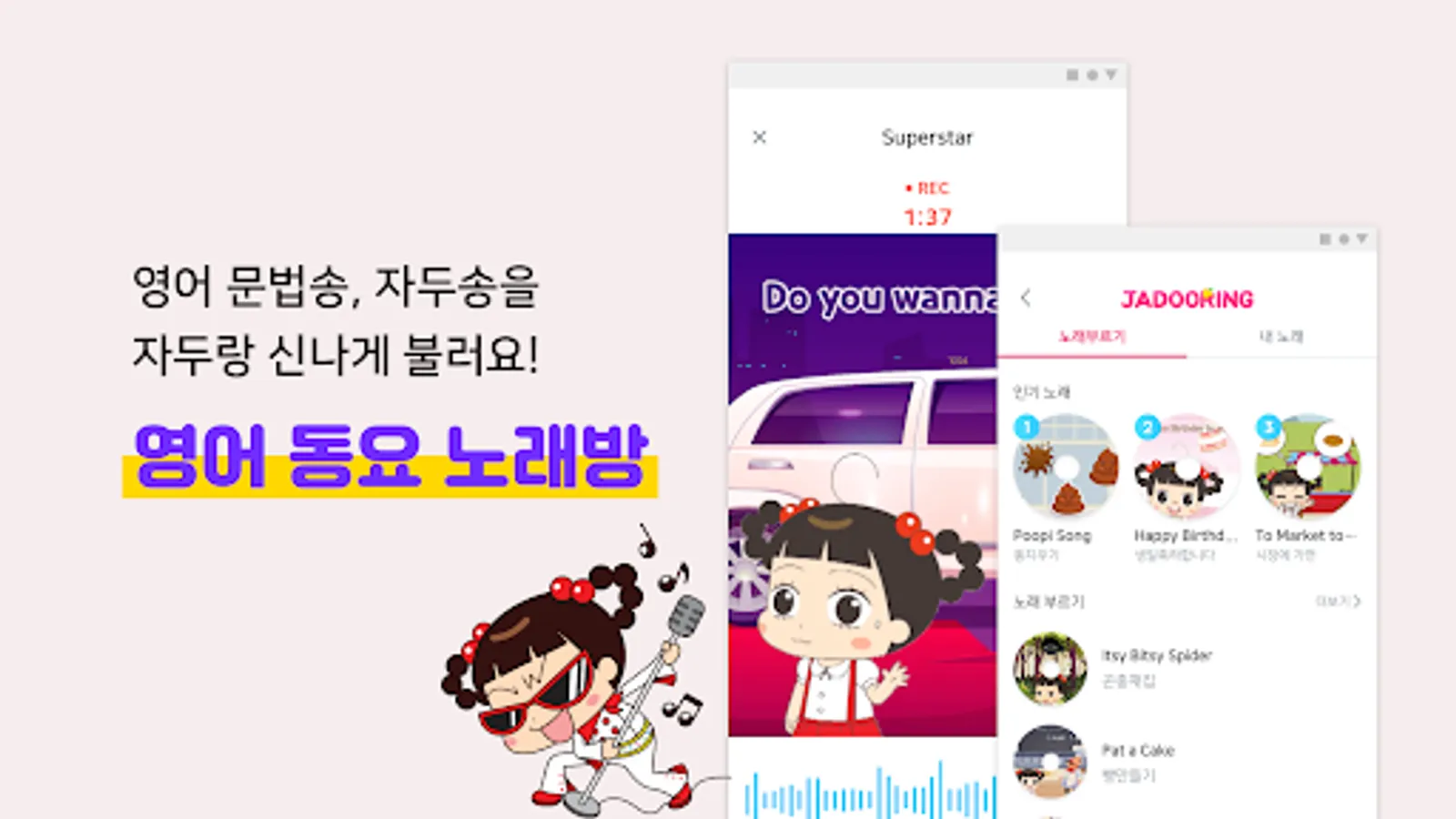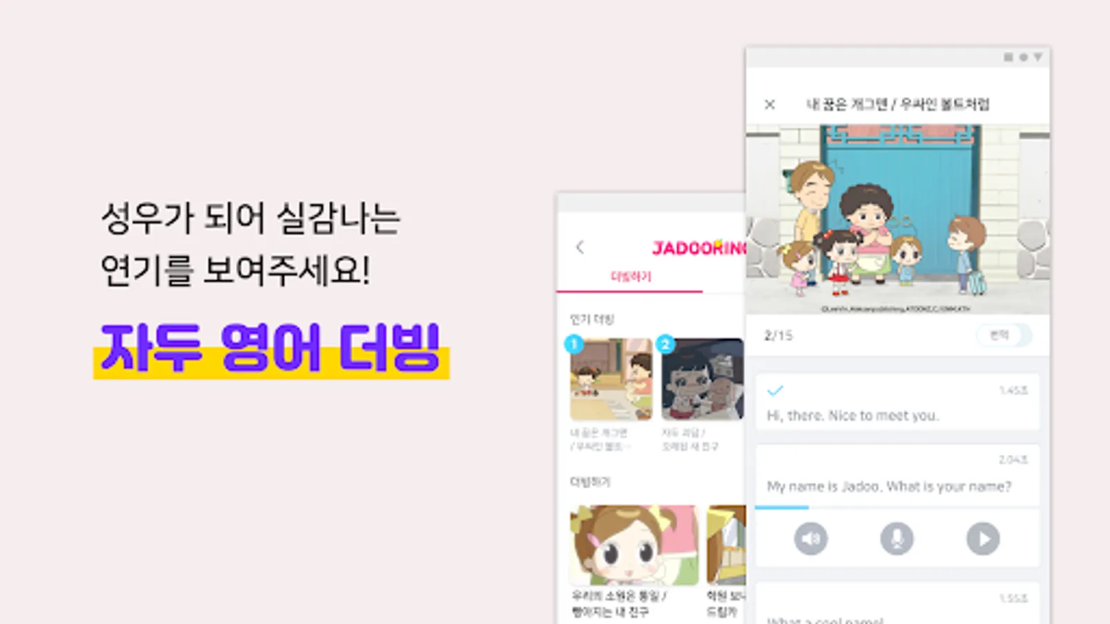 As soon as you turn on the Hello Jadu Ring app, you will receive a video call from RRR... Jadu! Have a daily conversation with Plum and the topic of the day, and share your thoughts while watching daily animations. You can also compare the badges you have collected with other friends and compete against each other, right? Daily English conversation practiced in my room without going to study abroad!
