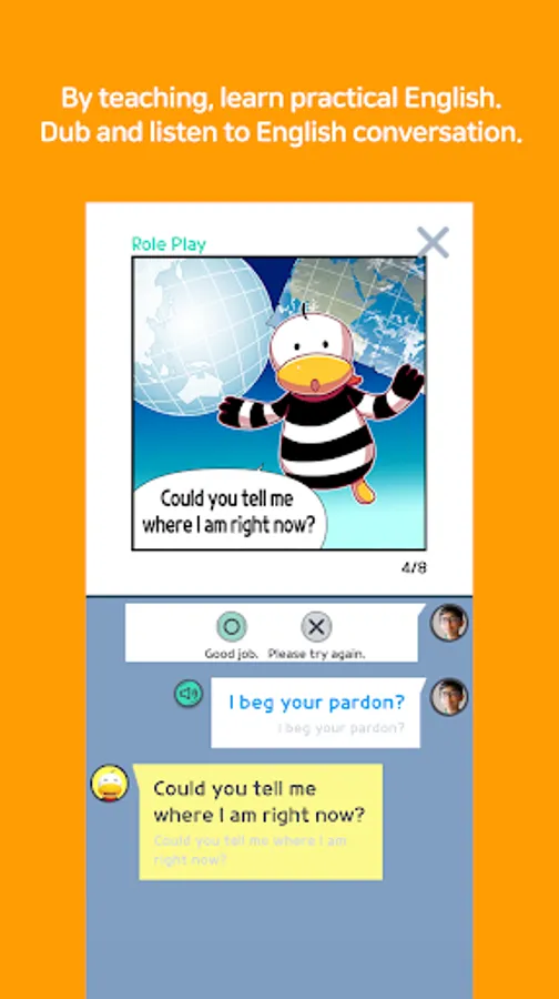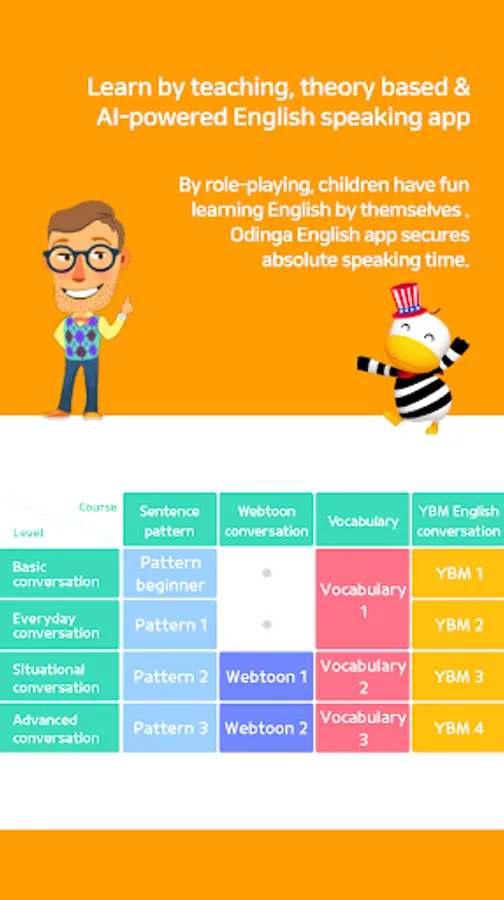 3. Webtoon role-play : Through fun webtoon contents about Odingaβs unpredictable adventure on Earth, your kid practices and dubs webtoon dialog with Odinga and improve practical English communication ability.