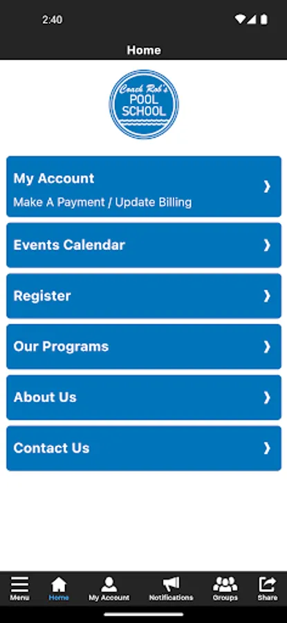 The Pool School app allows you to manage your account with ease, register for classes, and special events. You'll also receive important notifications about class changes, closings, registration openings, special announcements, and upcoming events.