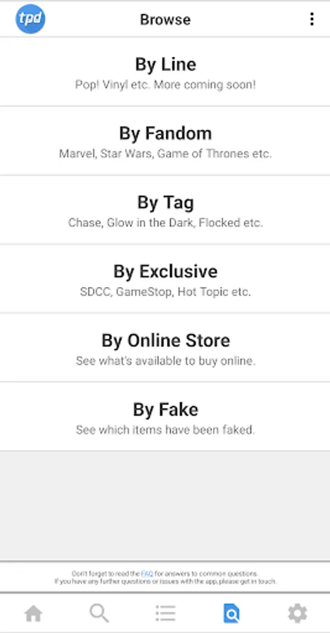 - Browse and search the entire database. By line, fandom, tag, exclusive, or online store.