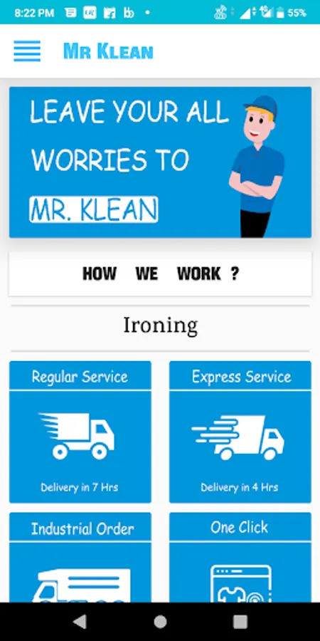 Mr Klean laundry and ironing services is a premium laundry and ironing services created with a vision to pioneer Laundry and Ironing services, through focus on quality,trust,personal commitment and excellent customer care. We bring the best ironing and laundry services at your doorstep. We collect clothes from your doorstep process them with all the desired tasks and deliver them back to you.