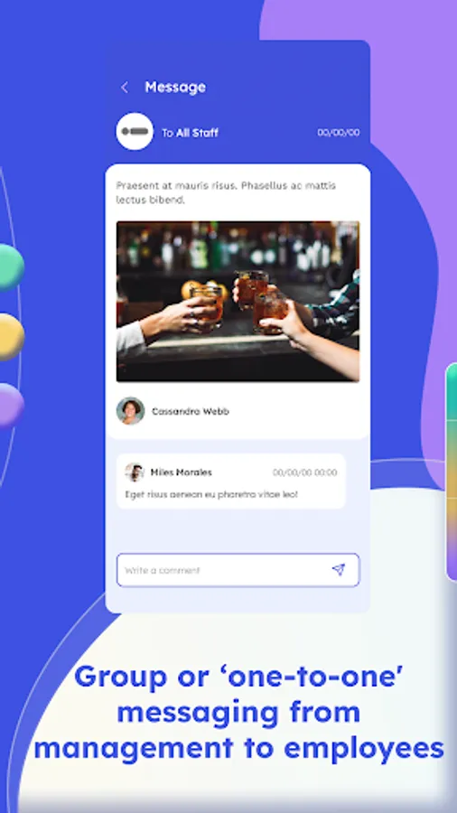 💬 Effective Team Communication: Stay connected with your team. Share information, news and updates effortlessly with your staff through one-on-one or group messaging,