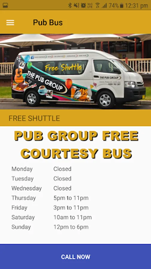 - The courtesy Bus times and call button