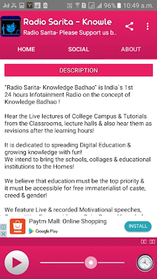 “Radio Sarita- Knowledge Badhao” is India`s 1st 24 hours Infotainment Radio on the concept of Knowledge Badhao !