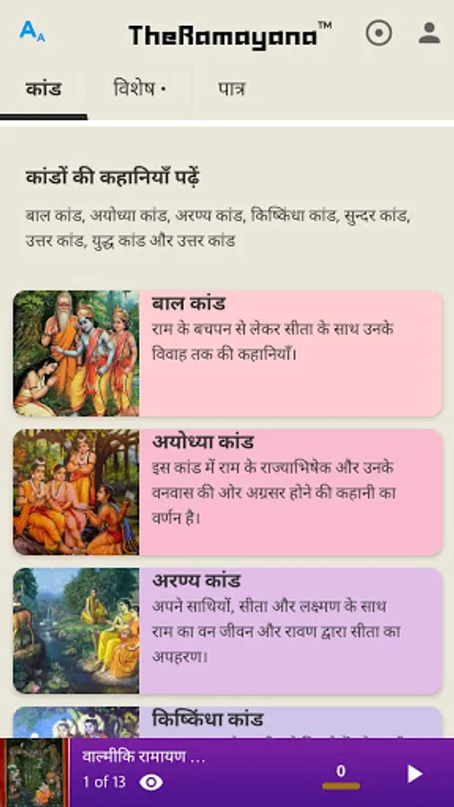 1. Explore 350+ short stories and verified stories from Tulsidas Ramcharitmanas and Valmiki Ramayana