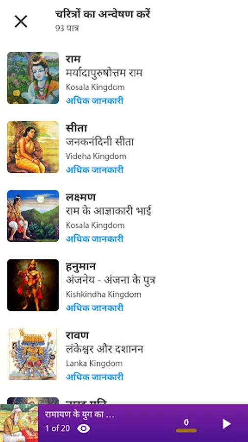 4. Explore stories by selecting over 90 characters and over 100 locations. Mapping from places in ancient India to present cities has included major events: birth of Rama, Sita Swayamvar, exile, abduction of Sita, war between Rama and Ravana and many more.