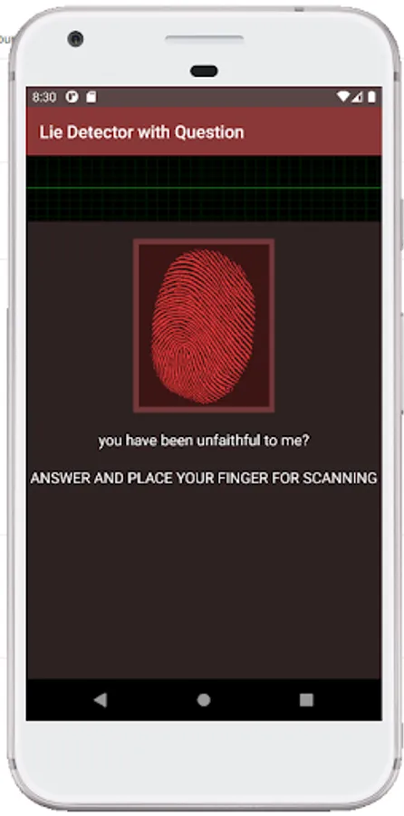 As a result, tricking fingerprint scanners and readers now requires a markedly higher level of expertise that goes far beyond rudimentary silicone spoofs. In essence, a liveness detection mechanism is a security feature developed to mitigate the vulnerability of biometric systems to spoofing attacks. Trick your friends with this fun app which simulates whether or not you are telling the truth. Lie Detector is a mobile scanner which detects lies based on complex scientific analysis of your fingerprint and heart rate. Press volume key "+" for truth, volume key "-" for lie when scanning. All fingerprint scanners are susceptible to be fooled by a technique that involves photographing fingerprints, processing the photographs using special software, and printing fingerprint replicas using a 3D printer. Ultrasound fingerprint scanners use high frequency sound waves to penetrate the epidermal layer of the skin.