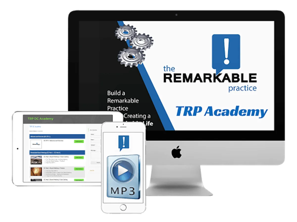 The Remarkable Practice Academy is your go-to resource for attracting, converting, and retaining patients and building and training your team. Inside the Academy you will find two different training programs: The DC Academy (for you, the chiro) and The CA Academy (for your staff).