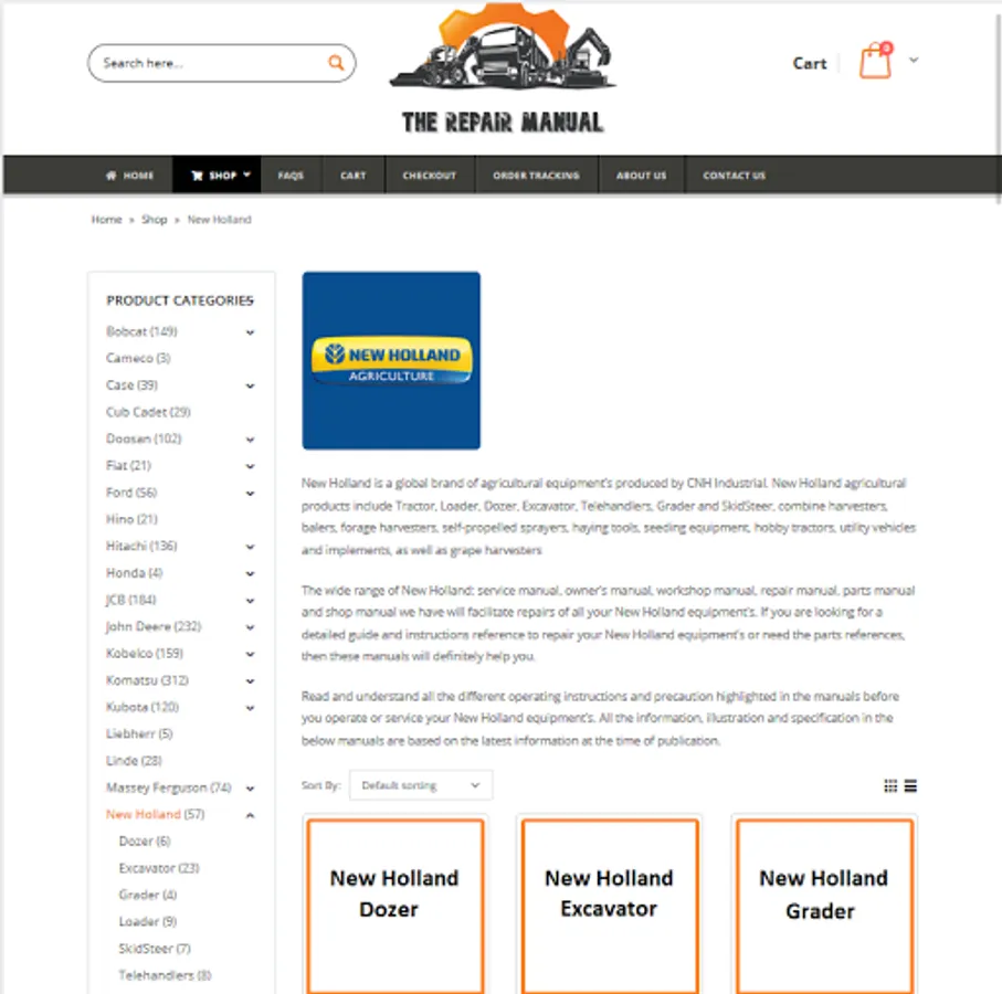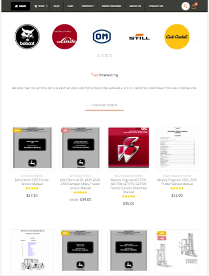 With over 50,000 different manuals from multiple heavy equipment manufacturer like John Deere, JCB, Komatsu, Kobelco, Hitachi, Doosa, Bobcat, Massey Ferguson, Kubota, etc..