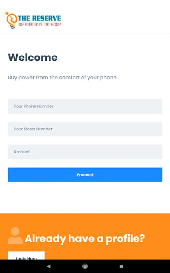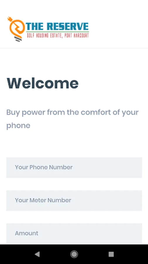 This platform is for the Residents/Home owners in The Reserve Estate, Trans-Amadi, Port Harcourt, Rivers State to purchase Electricity Units online for their Prepaid Meters.