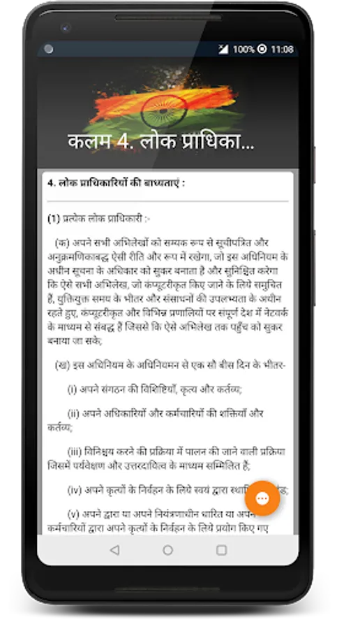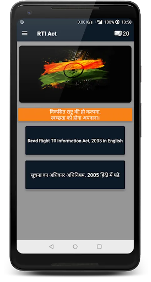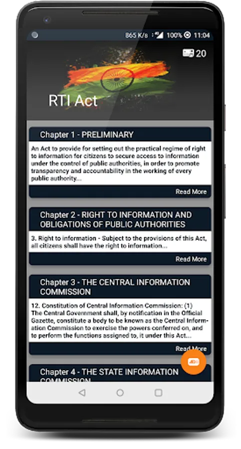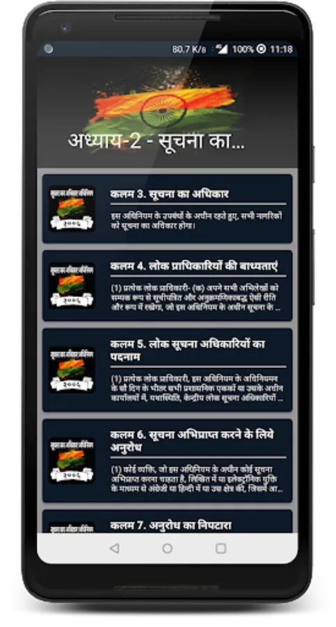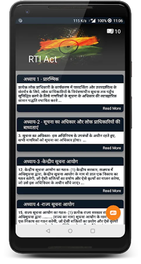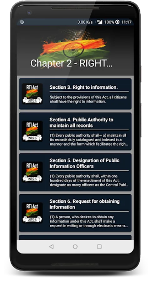 Now you can read and listen The Right to Information Act in English as well as in Hindi language. The app is divided properly in language, chapter, and section details.