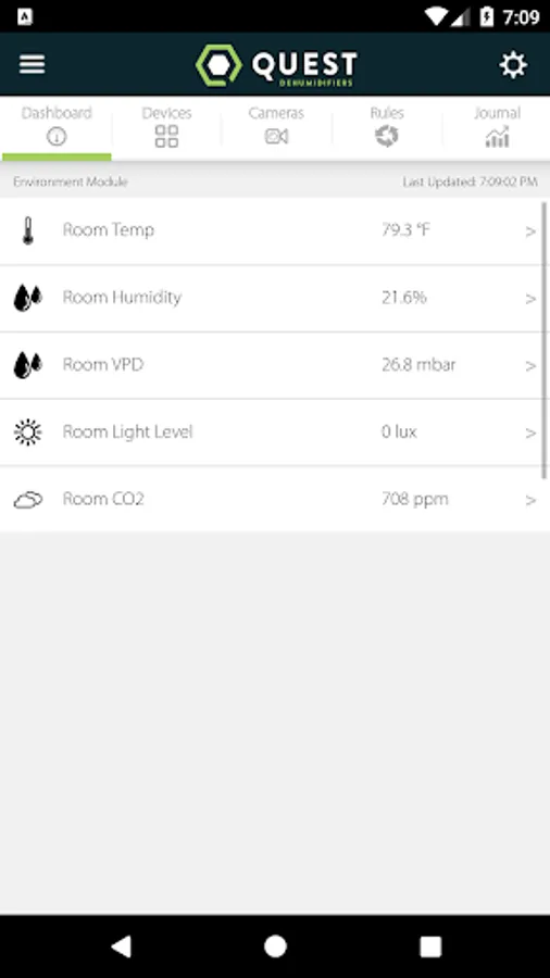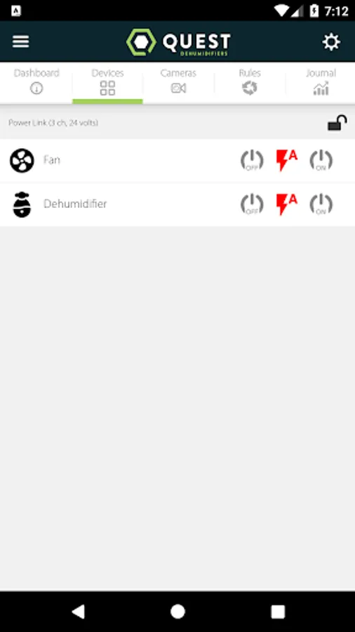 The Quest Cloud Control app works with supported Quest dehumidifiers. The app allows you to monitor sensor data in real-time and control any connected devices. You can set up rules including sensor triggers, timers, and schedules to automate the dehumidification process.
